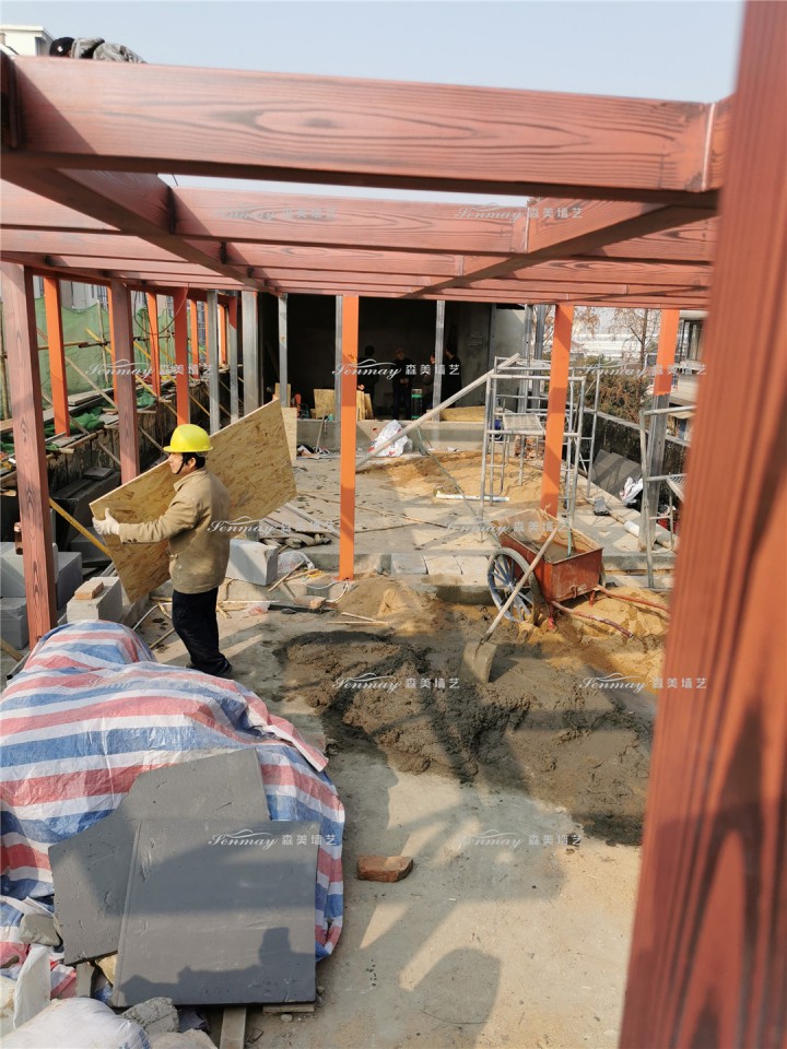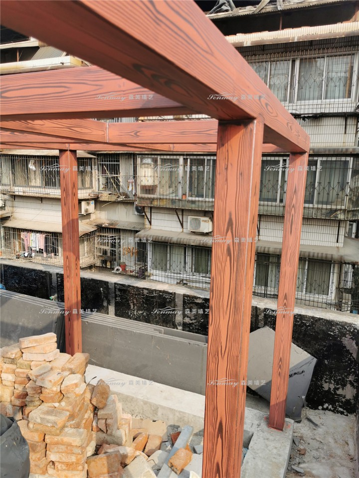 湖北武汉江岸区长湖地钢结构长廊仿木纹漆施工